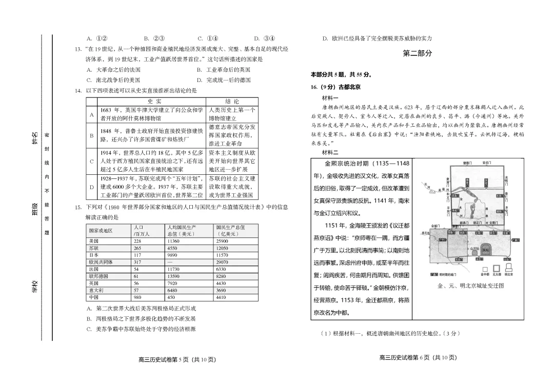 北京交大附中2023年高一上学期期中考历史试题及答案