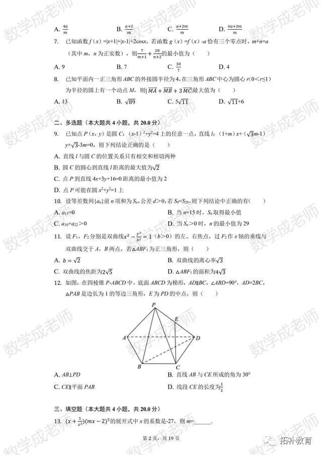 重庆巴蜀中学2025届高考适应性月考卷(二)数学试题及答案