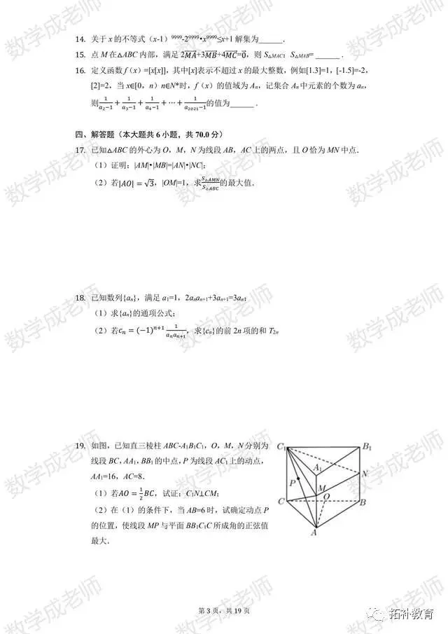 炎德英才大联考长沙一中2024届高三月考(三)数学试题及答案