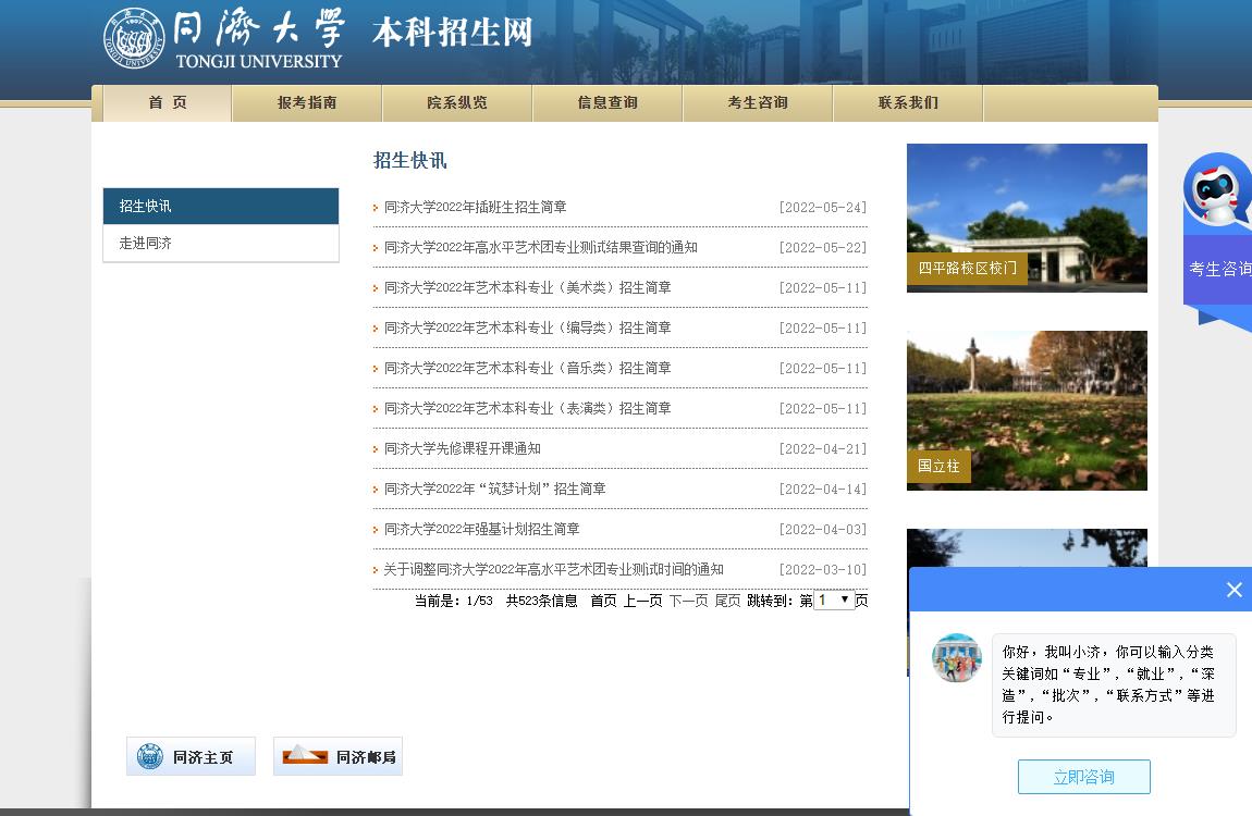 同济大学本科招生网:http://bkzs.tongji.edu.cn