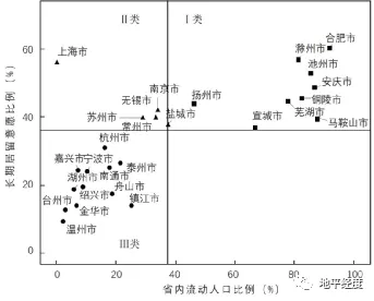 长三角城市群是我国经济最发达的三大城市群之一,根据第七次全国人口普查,长三角三省一市流动人口总量7357.3万人,占全国流动人口的19.6%。提高流动人口长期居留意愿并使其在城市稳定居住,是实现转移人口市民化和提高城镇化质量的关键。图1示意长三角市城市群流动人口来源—居留意愿组合类型。据此完成3~4题。