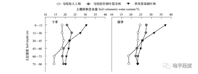 原因:鼎湖山森林演替从早期到晚期阶段,地表植被组成与结构趋于复杂,土壤理化性质逐步改善,土壤体积含水量逐步提升;(2分)季风常绿阔叶林土壤理化性质不断完善(土壤有机质、腐殖质含量增加等),土壤蓄水、保水能力强,表层土壤体积含水量增加显著。(2分)