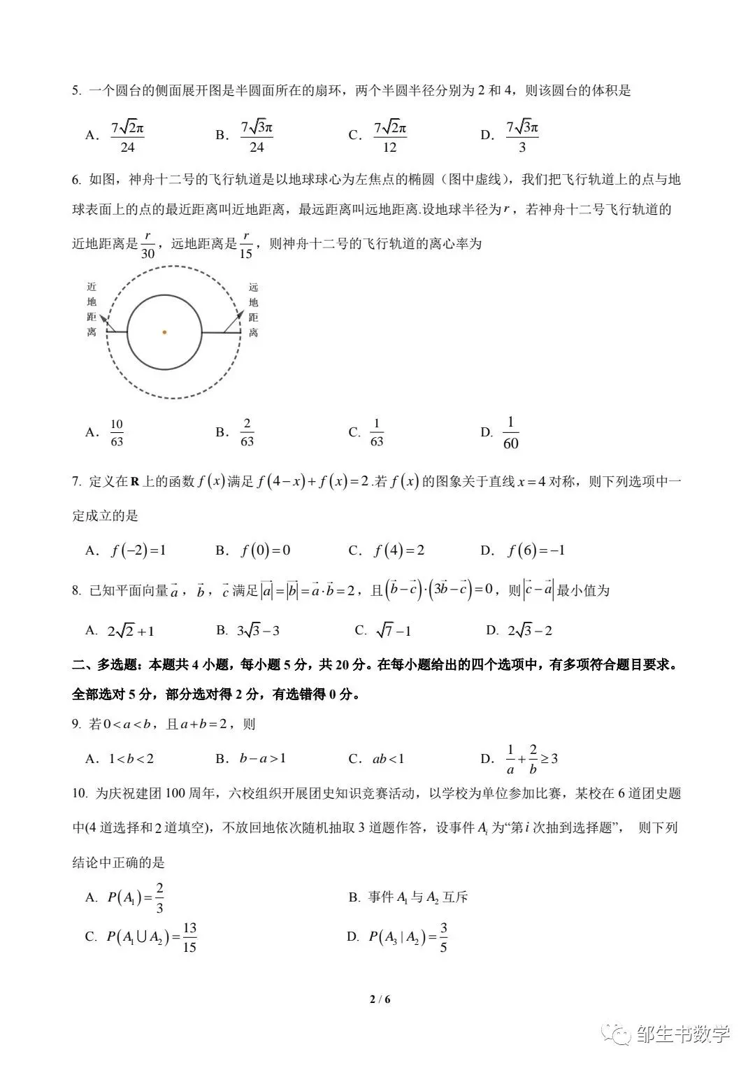 2022年新高考II卷(新高考二卷)数学试卷真题与答案解析