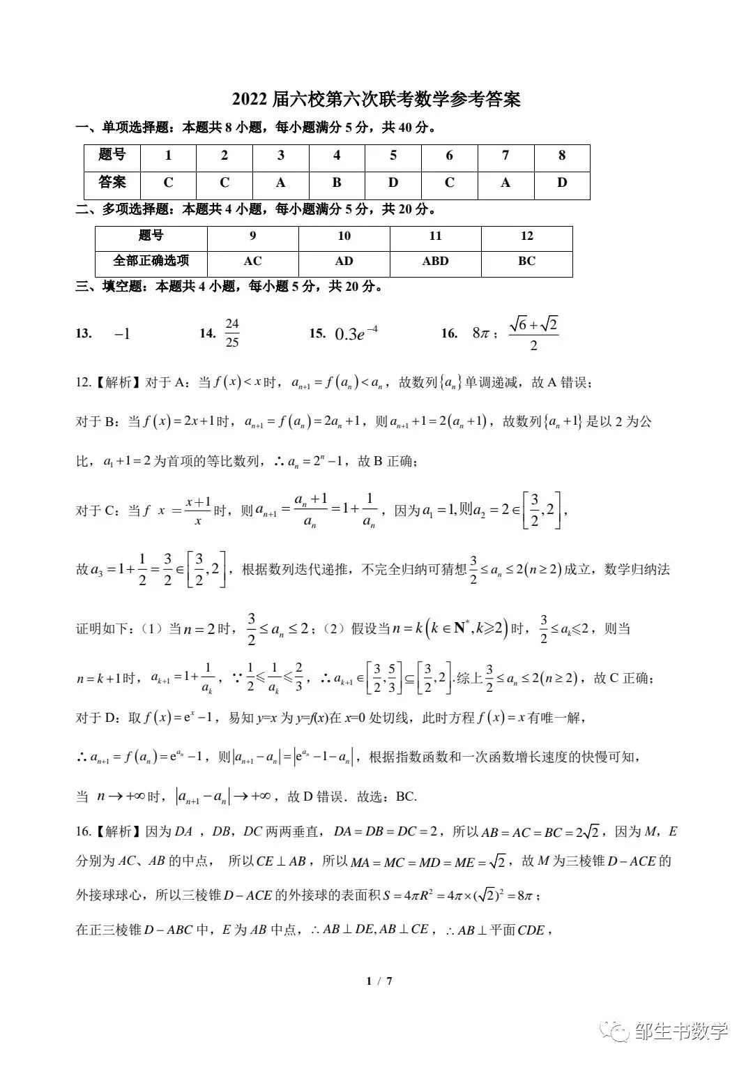 2022年新高考I卷(新高考一卷)数学试卷真题与答案解析