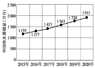 中国某净水器公司在深圳建有生产基地,在自主研发的同时,引进德国先进的全自动化净水设备生产线,加大净水器的生产量,并为用户精心打造全屋深度净水产品,其中选择性过滤净水器过滤有害物质后可保留对人体有益的矿物质。2020年,公司生产规模扩大1倍,但生产基地仍在深圳。如图为2015~2020年中国净水器销售统计。据此完成1~3题。