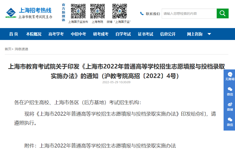 附件:上海市2022年普通高等学校招生志愿填报与投档录取实施办法