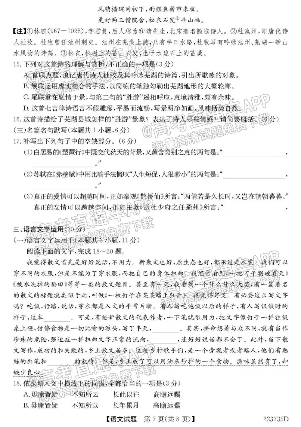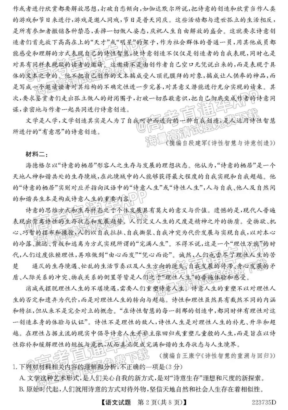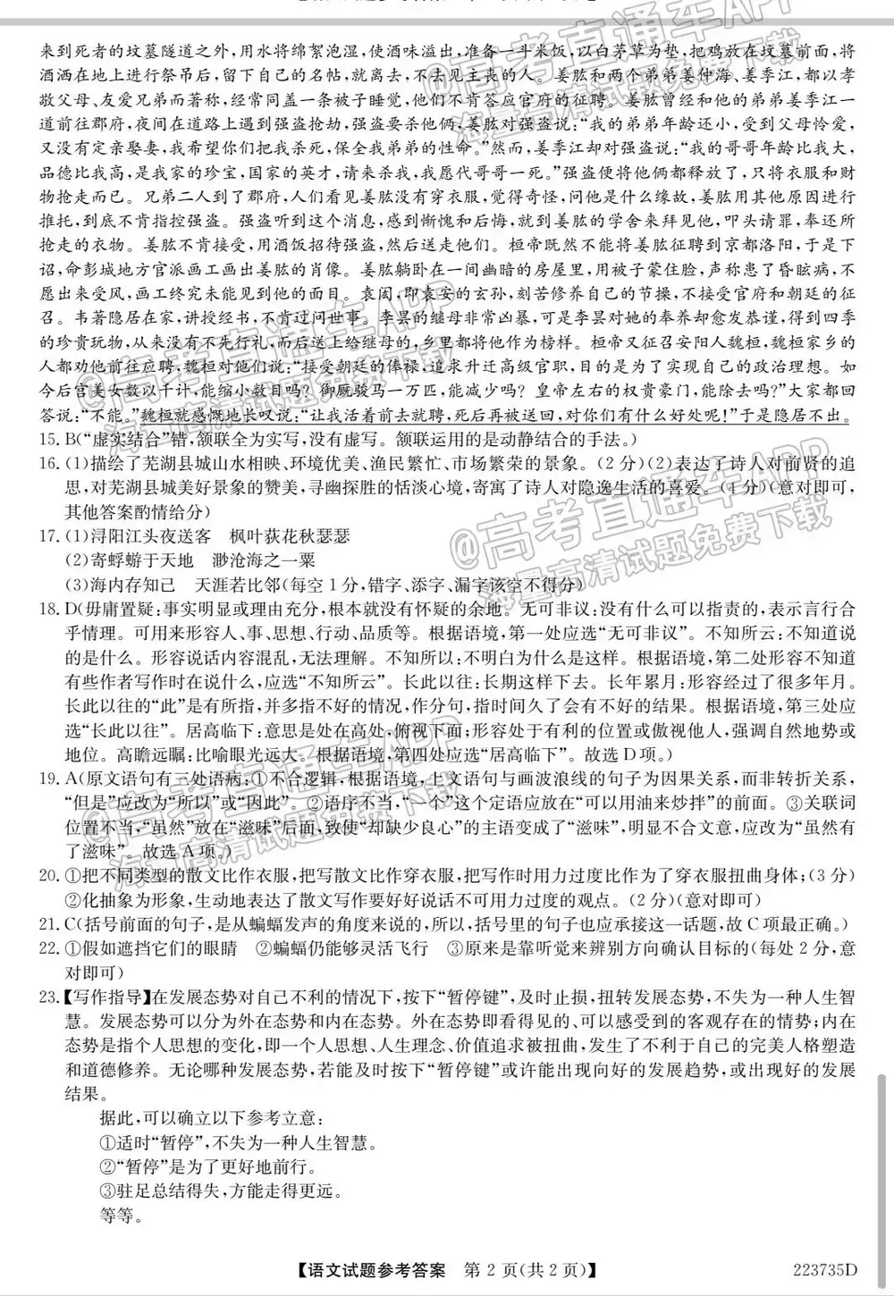 2022全国新高考II卷(新高考二卷)语文试题及答案