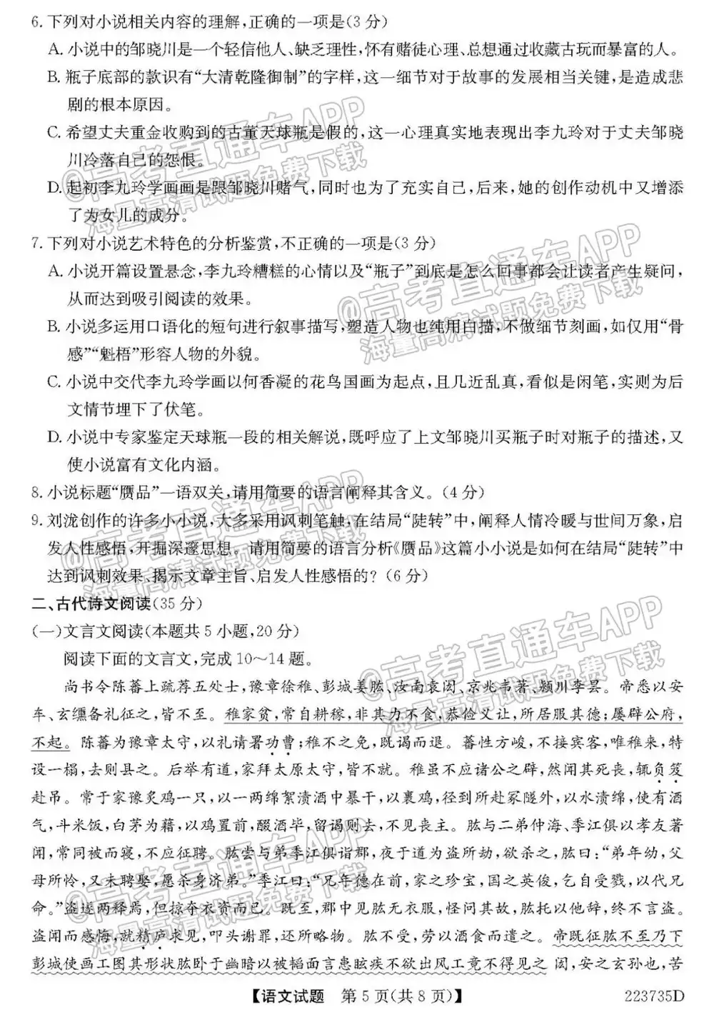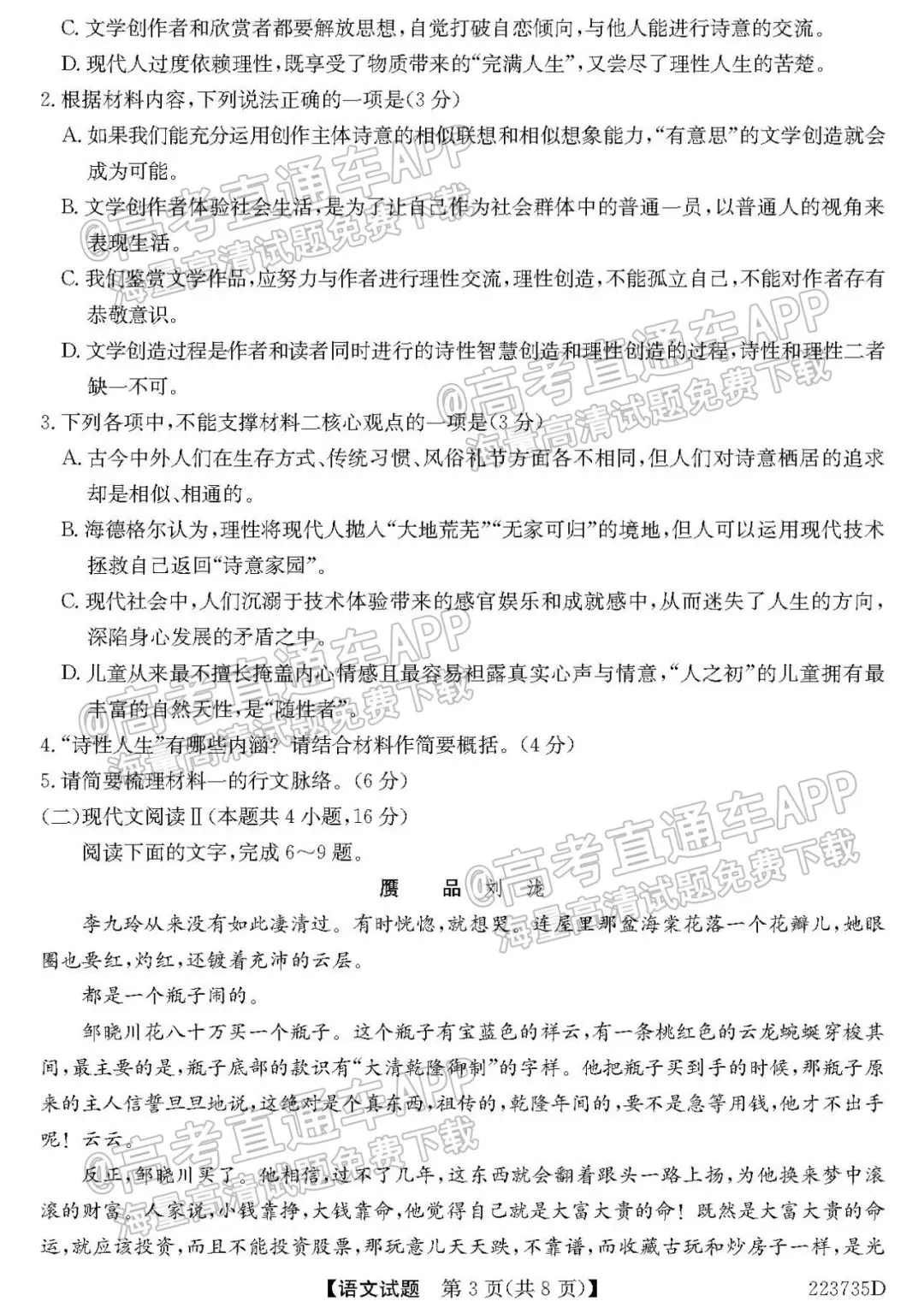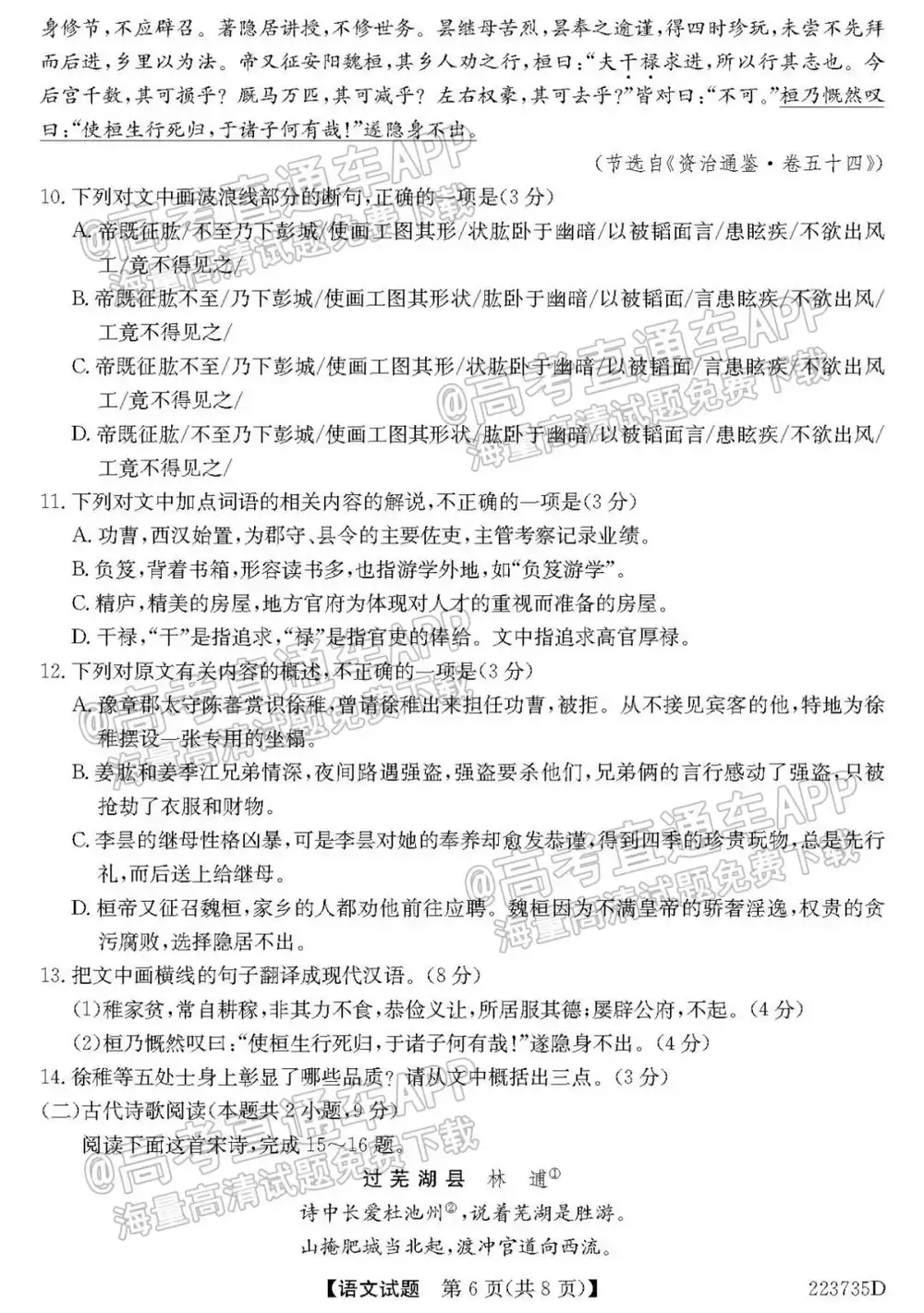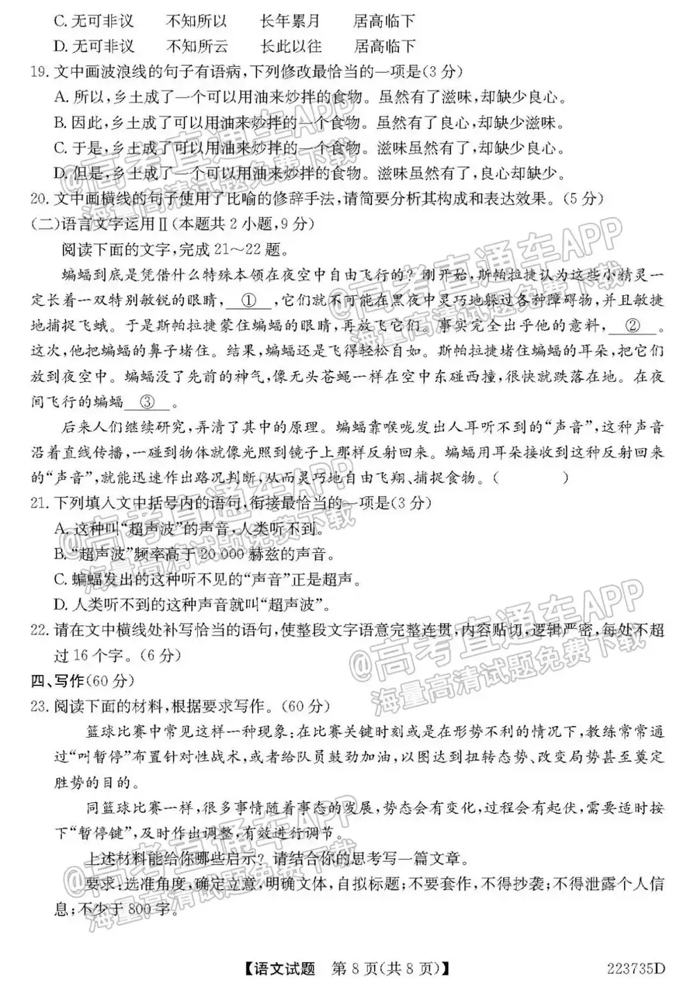 2022全国新高考II卷(新高考二卷)语文试题及答案