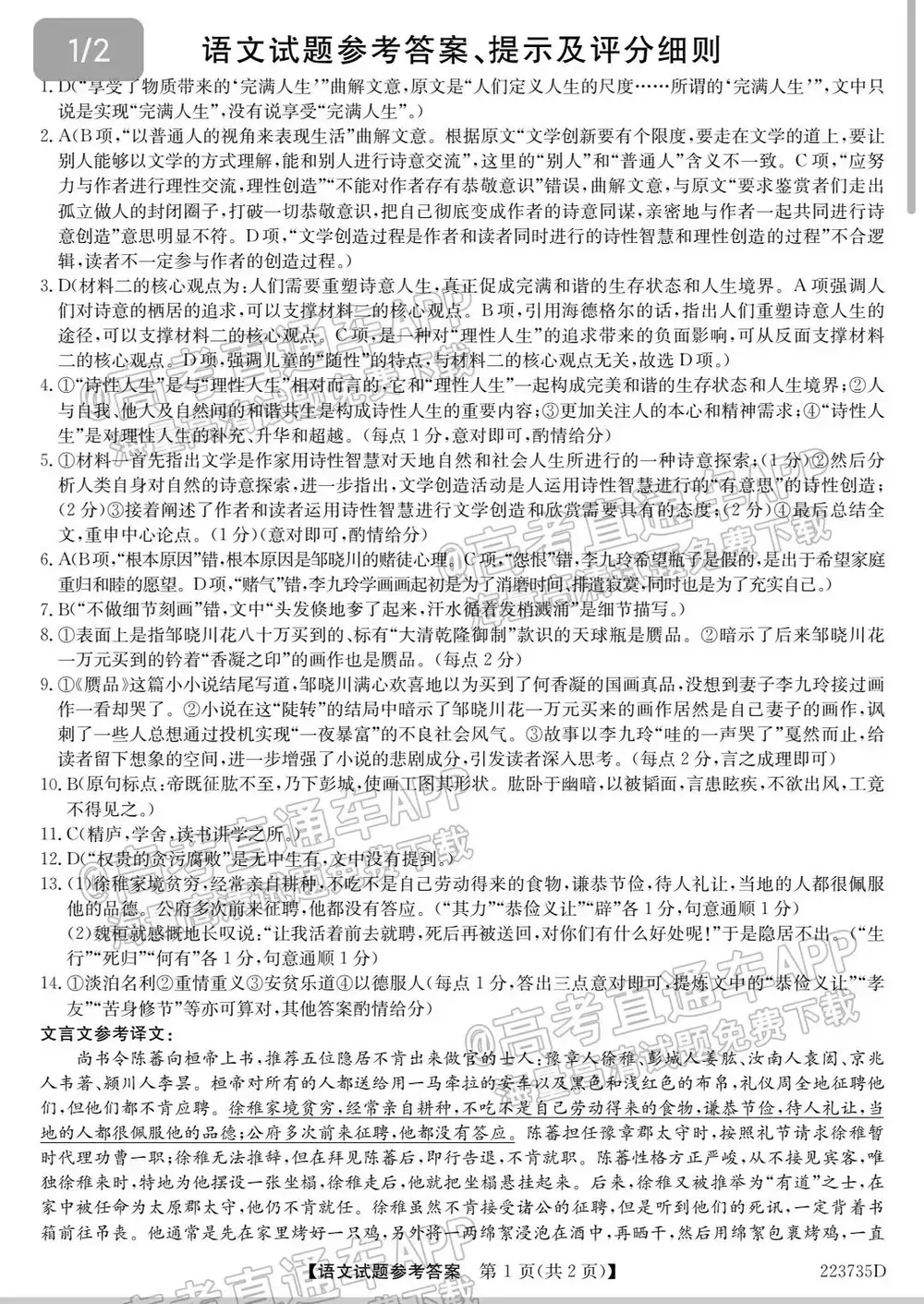 2023年四省联考高三语文答案解析