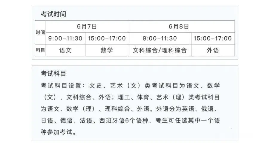 2022年陕西高考时间于6月7日至8日举行。具体时间科目如下:7日9: 00--11:30 语文,15:00--17:00 数学;8日9: 00--11:30 文科综合/理科综合,15:00--17:00 外语。