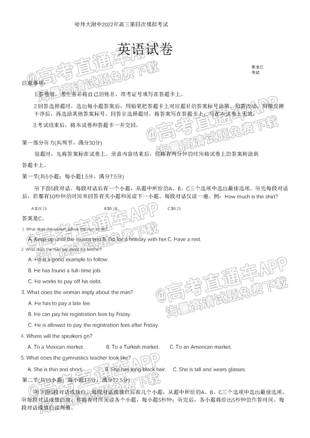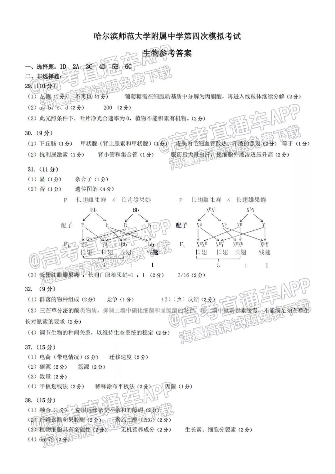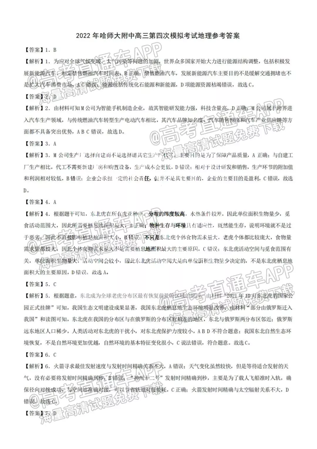 2022东北三省三校四模文综,理综,英语三科试题及参考答案
