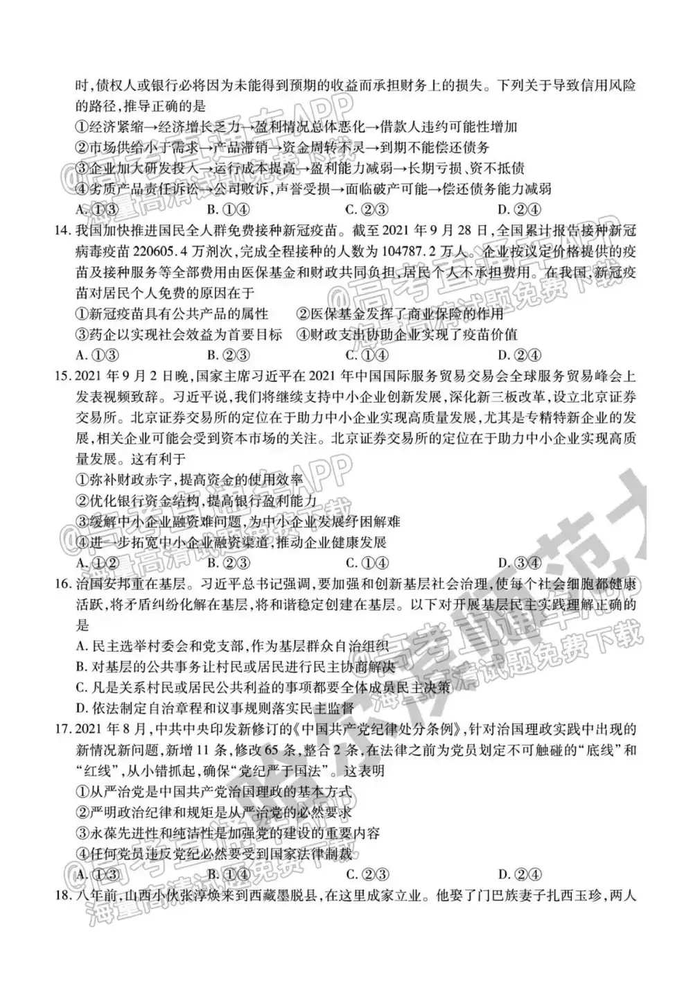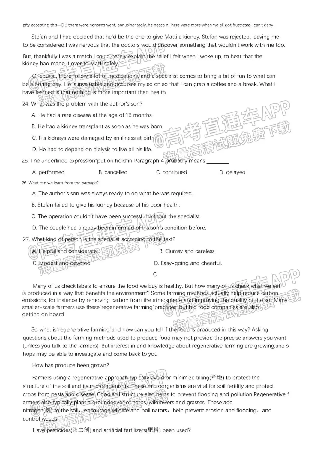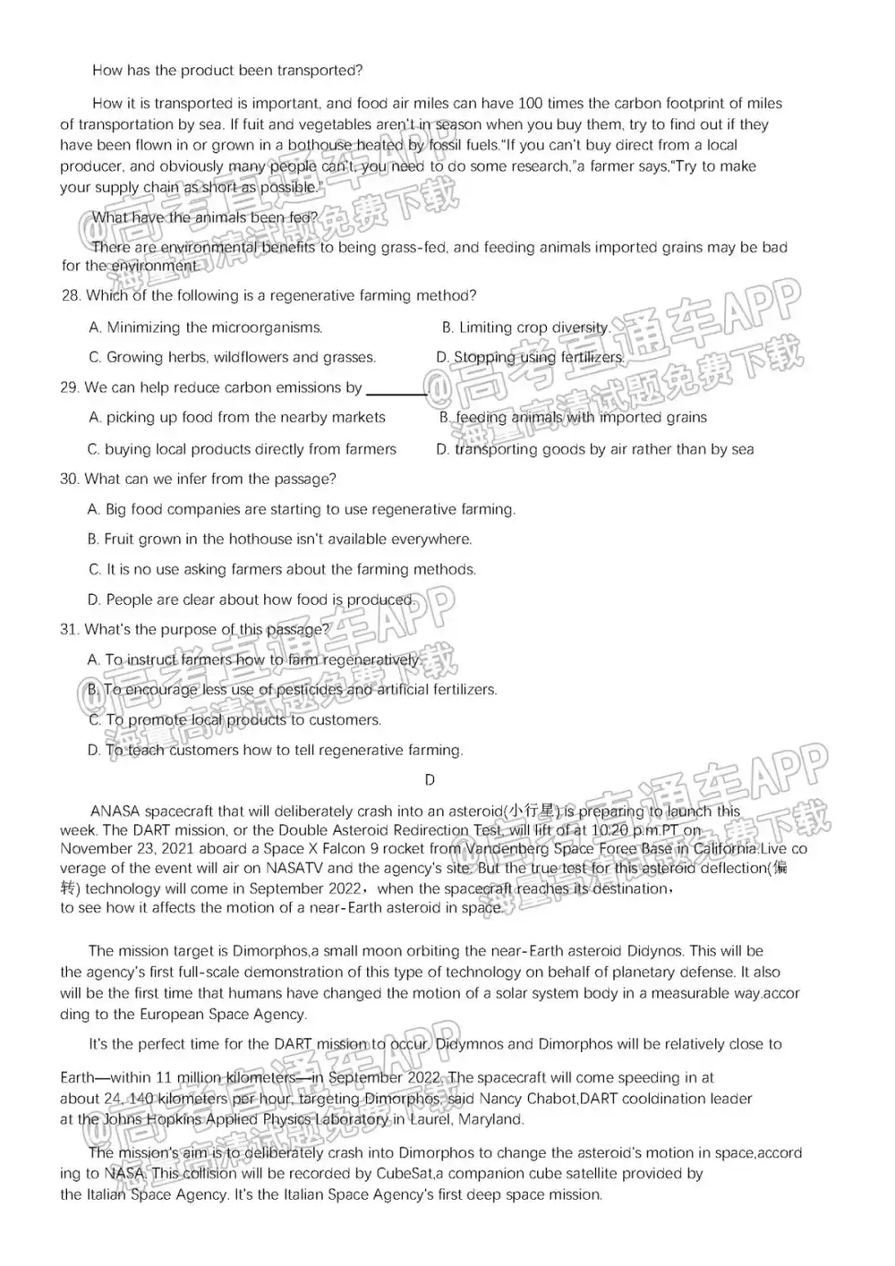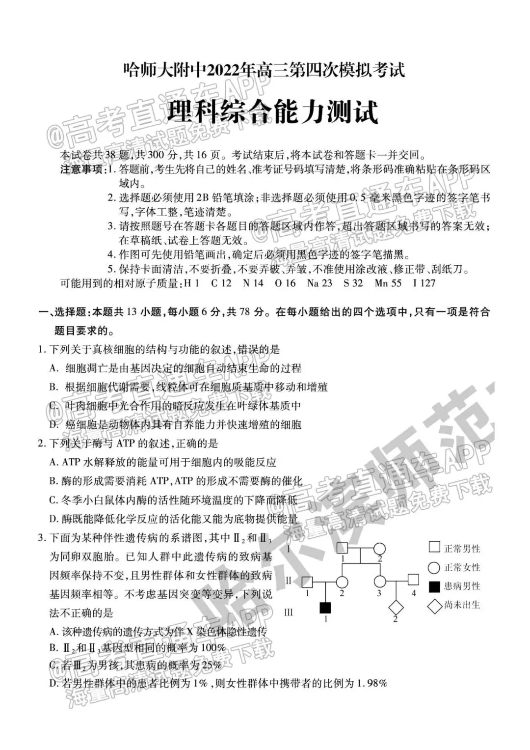 2022东北三省三校四模文综,理综,英语三科试题及参考答案