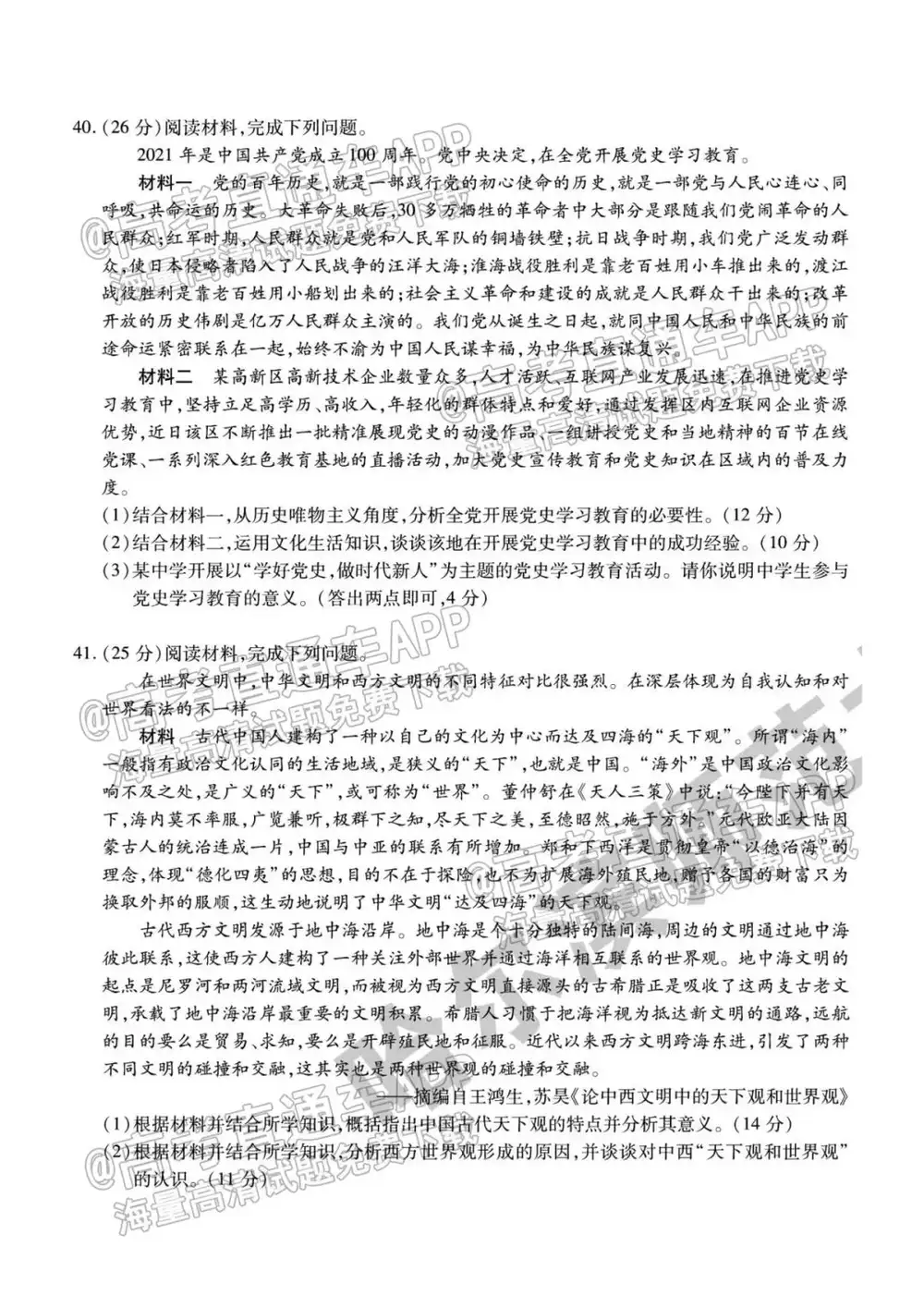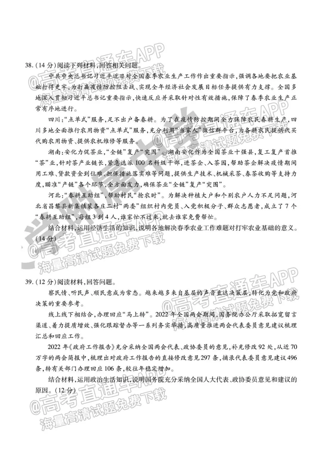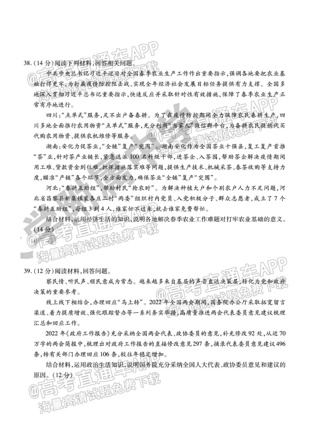 2022东北三省三校四模各科试题及参考答案【文综,理综,英语】