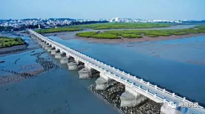 【点睛】洛阳桥原名万安桥,是古代中国桥梁建筑的杰作之一。位于洛阳口, 距福建泉州城5公里,北宋皇佑五年至嘉佑四年(1053~1059年)由泉州知州蔡襄主持修造。洛阳桥被列为国家级重点文物保护单位。桥长834米,宽7米。作为中国现存最早的跨海石桥,其"筏型基础"、“种蛎固基法", 是中国乃至世界造桥技术创举,充分显示了中国古代劳动人民的非凡智慧。