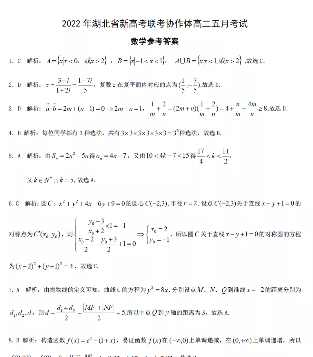 湖北高中数学