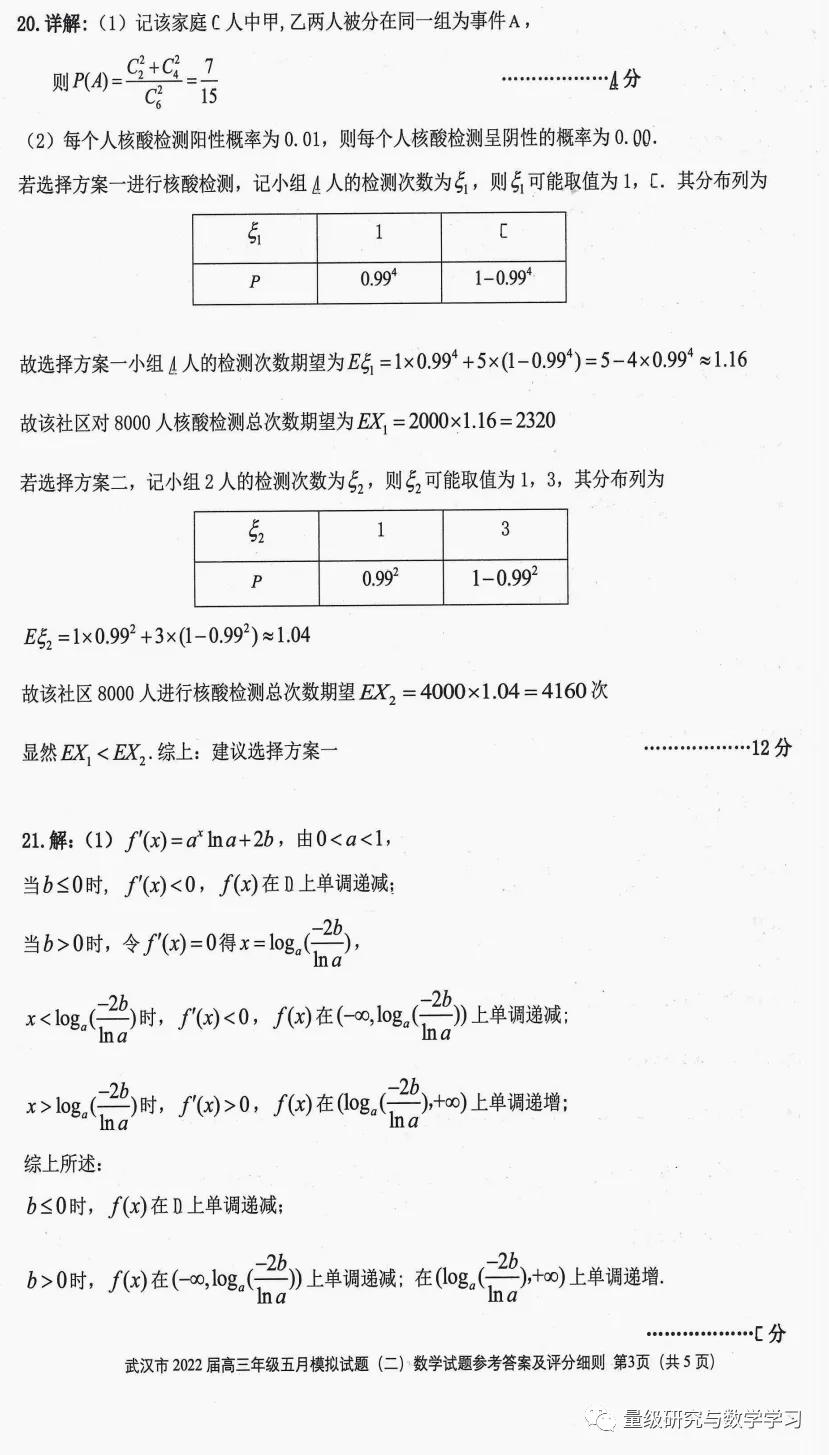武汉市2022届高三年级五月模拟试题(二)数学试卷及参考答案