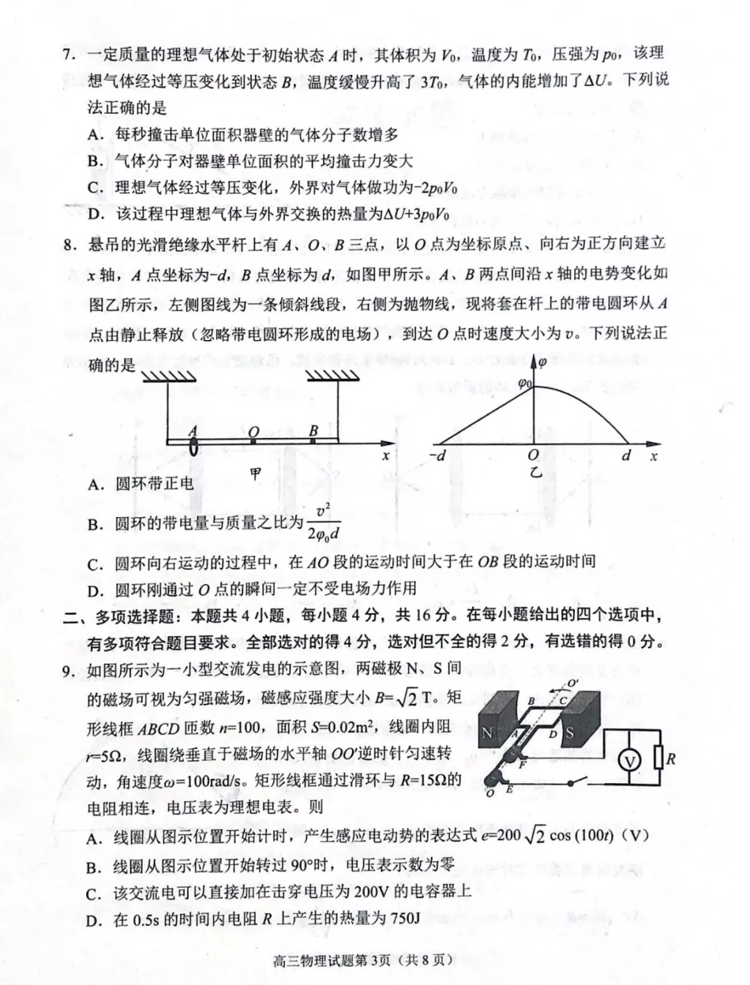 山东淄博2023-2024学年度高二下学期期末质检物理试题及答案