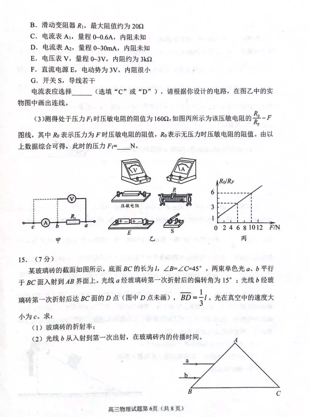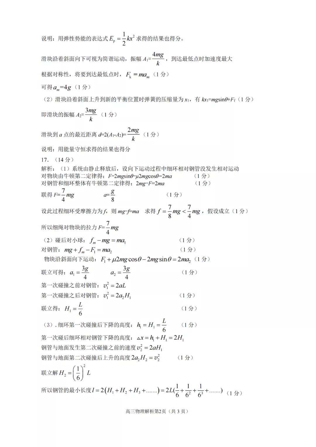 第39届全国中学生物理竞赛复赛参考答案及试题(2022年奥林匹克)