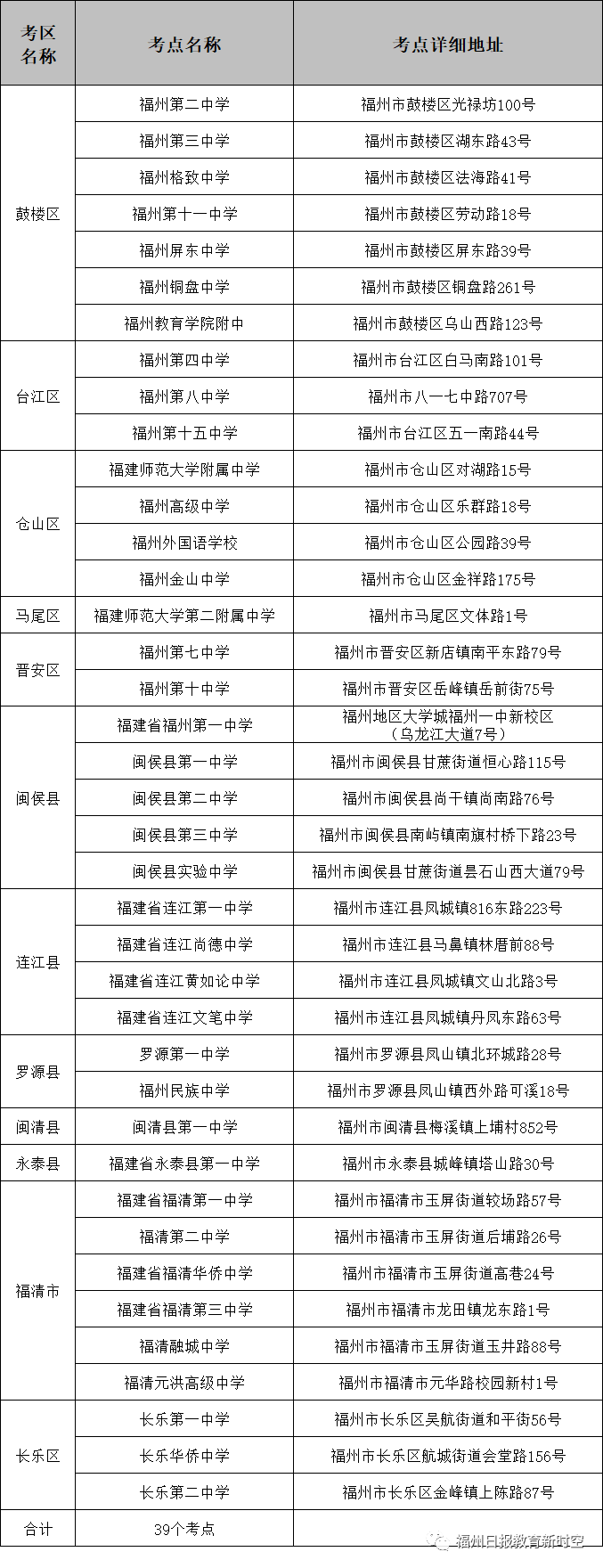 2022年我省普通高考福州市共设12个考区,39个考点。