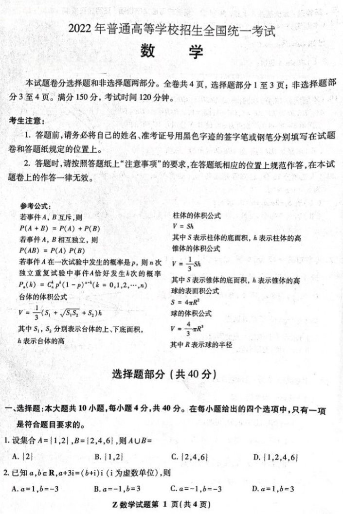2022年浙江高考数学试卷真题及答案已公布了,后期本站会及时更新2022浙江高考数学试卷和答案的最新相关消息,供广大考生及家长对照、估分、模拟使用。