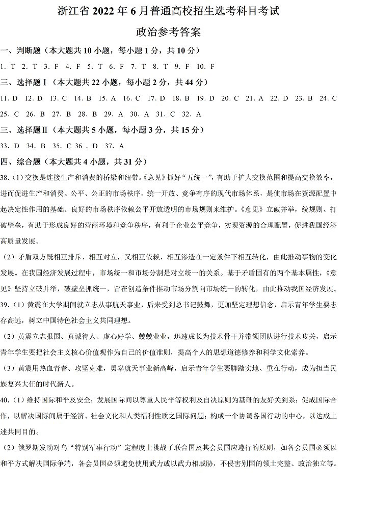 2022年浙江高考政治试卷真题及答案解析(已更新)