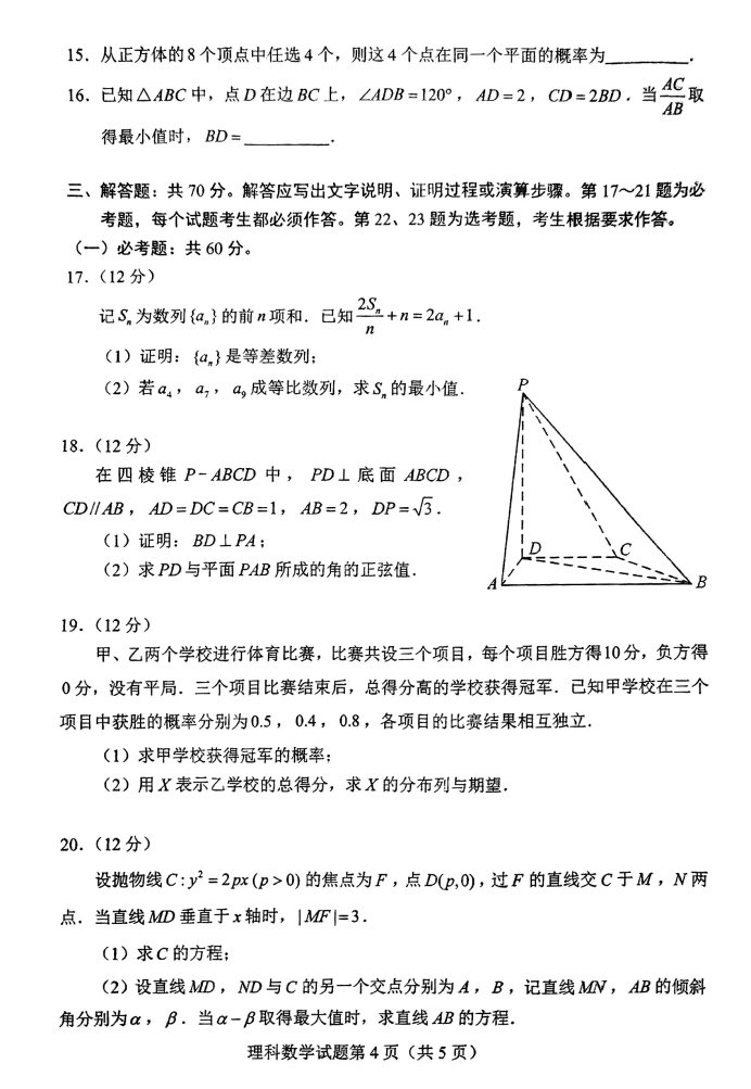 2022年高考全国乙卷数学(理)试卷真题与答案解析