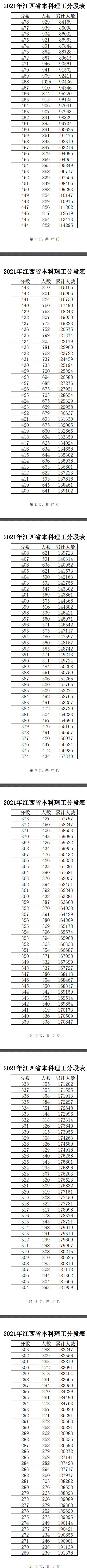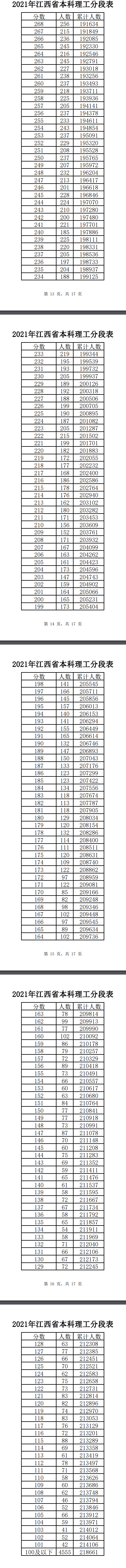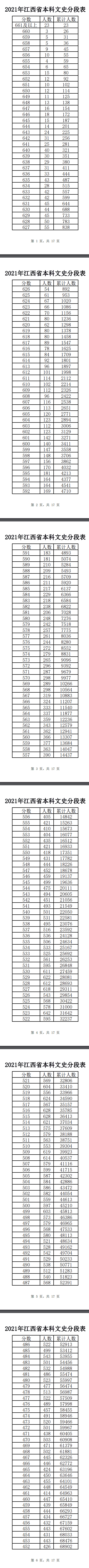 2021年江西高考一分一段表