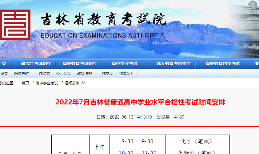 2022年7月吉林省普通高中学业水平合格性考试时间安排