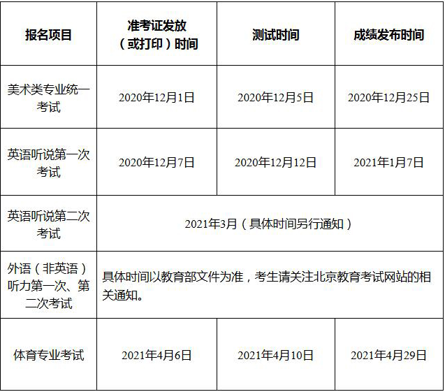 2021北京高考体育专业考试时间公布