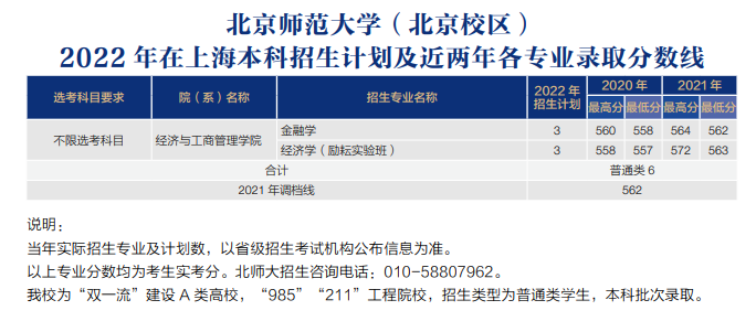 2022北京师范大学在上海招生计划及录取分数线