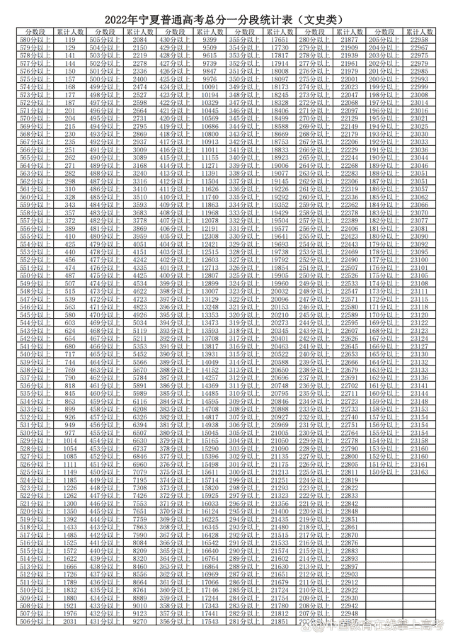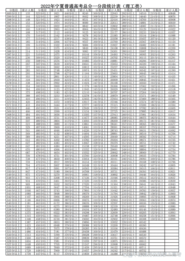 2022宁夏高考文理科一分一段统计及位次排名查询表汇总
