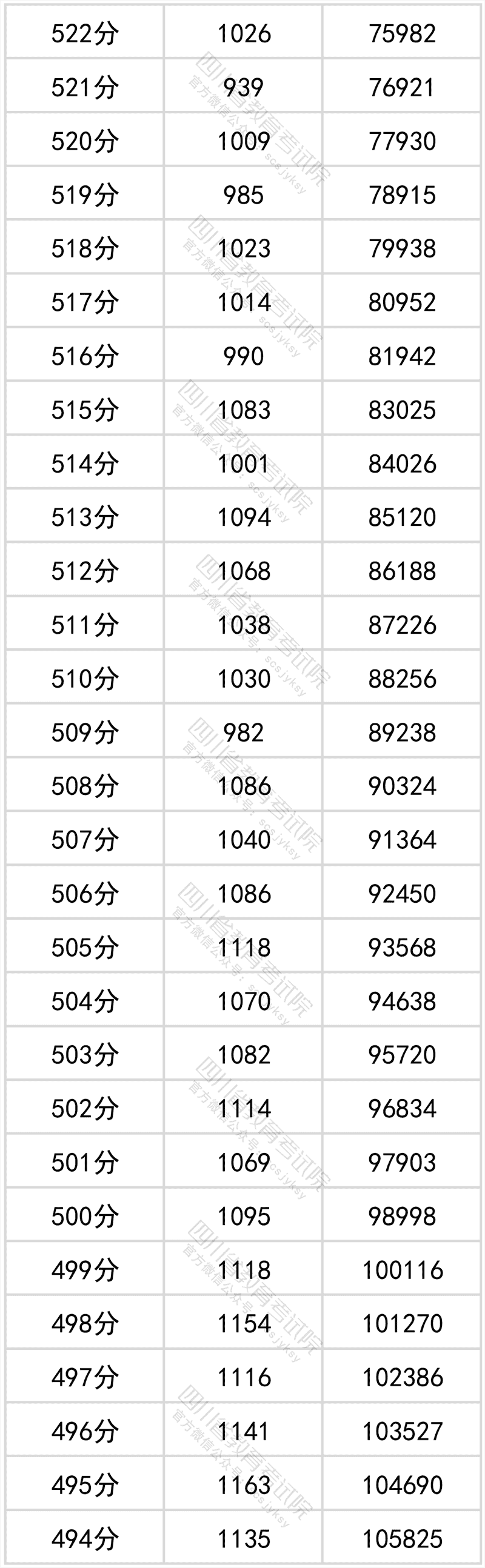 2022年四川高考一分一段排名表及分段位次查询(含文理科)