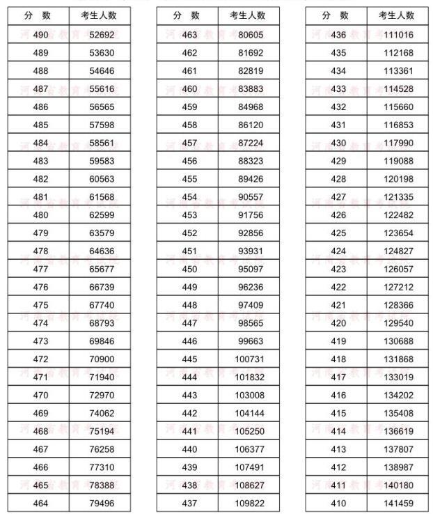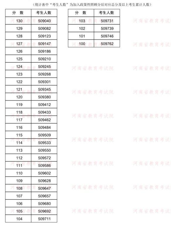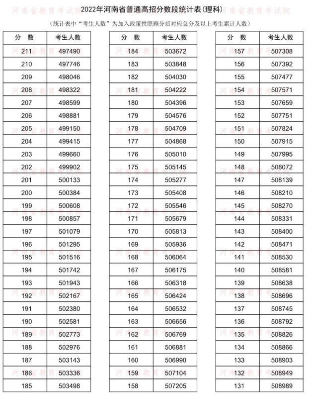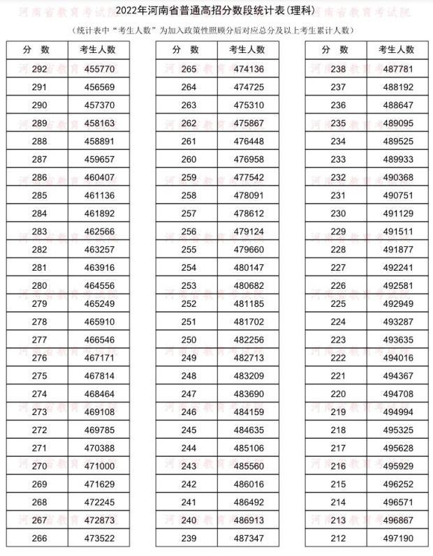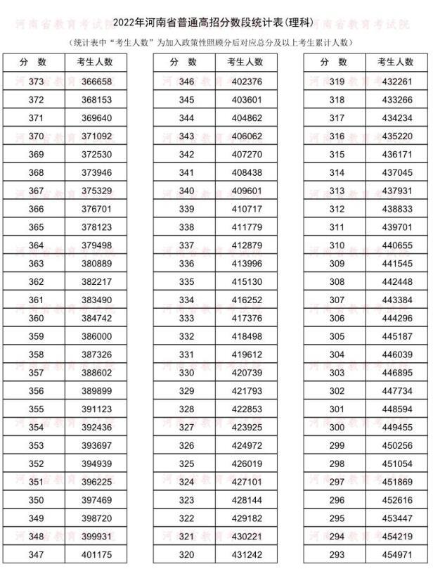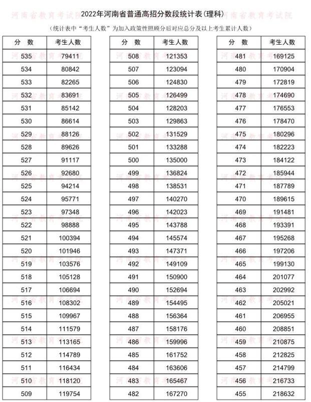 2022年河南高考一分一段表 河南高考成绩排名2022