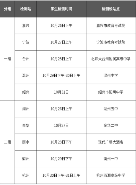 未设站的地市学生就近上站,个别需要调整上站地点的县区提前协调;舟山市宣传、初选一并组织,不单独设站检测;具体日程如有调整以通知为准。