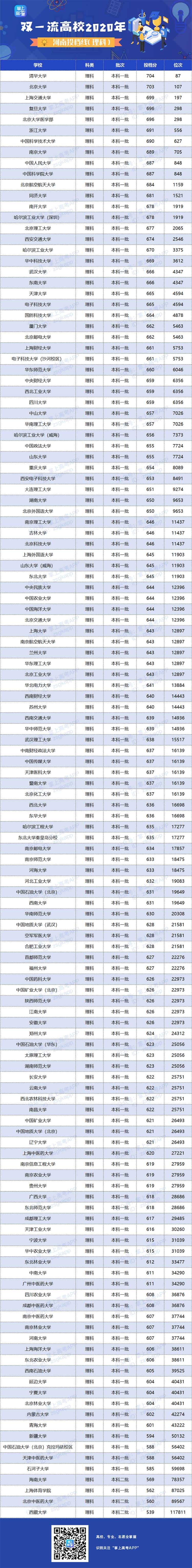 2020年双一流大学在河南投档分数线及位次
