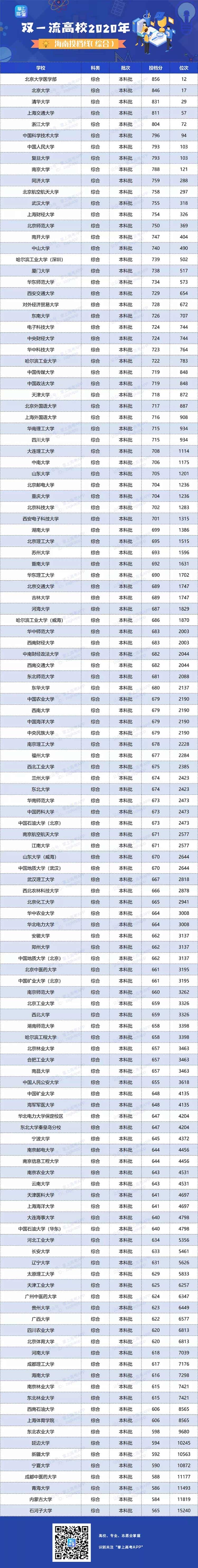 高考结束后,各位家长和考生都比较关心各个大学的投档分数线,下面小编为大家总结整理了2020年高考双一流大学在海南的投档分数线和位次,希望对大家有所帮助。