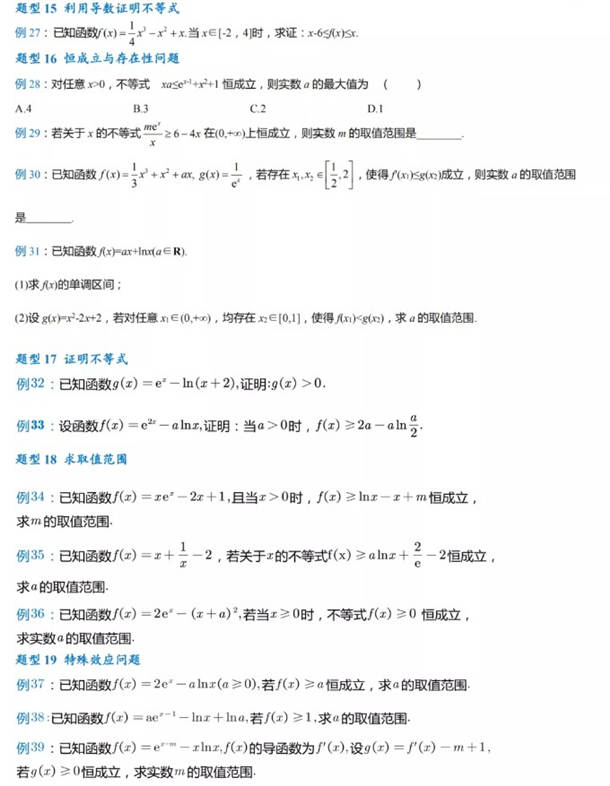(1)函数是该题型的主体:三次函数,指数函数,对数函数及其复合函数。