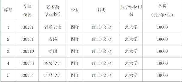 音乐表演、表演、动画、环境设计、产品设计等艺术类本科专业,学校外语课程只安排英语教学,其他语种考生慎报。