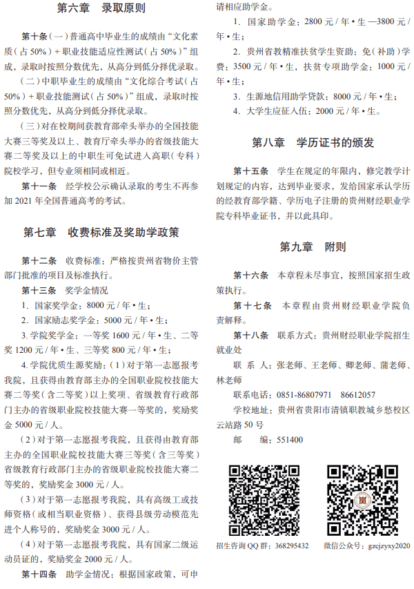 贵州财经职业学院招生章程