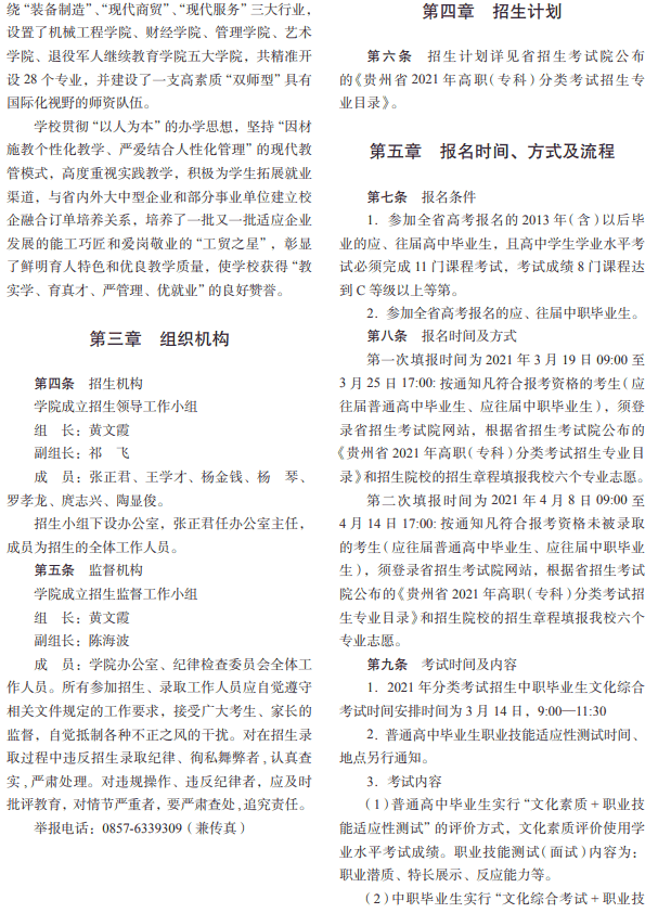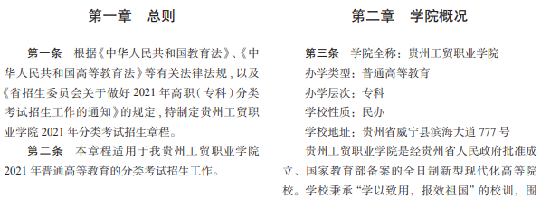 贵州工贸职业学院2021年分类考试招生章程