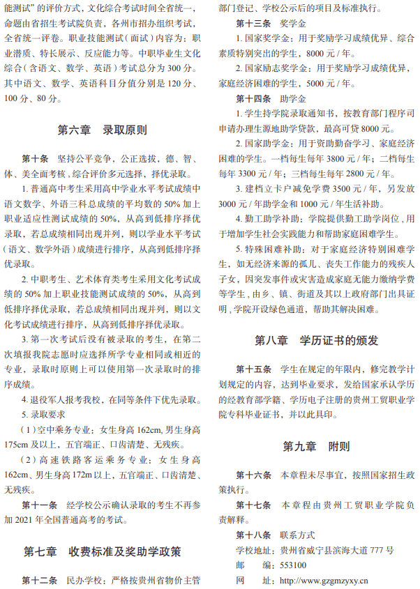 贵州工贸职业学院招生章程