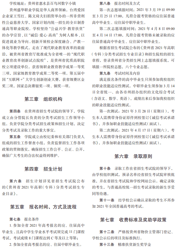 贵州盛华职业学院是由威盛信望爱公益基金会慈善举办,由贵州省人民政府批准成立、国家教育部备案的全日制大专层次普通高等职业学校,力创成为中国首所非营利公益性高等学府。