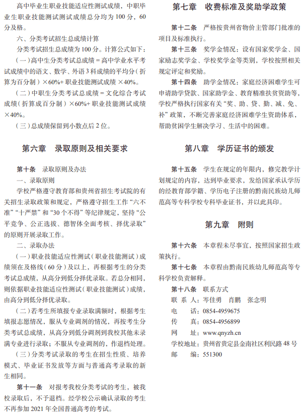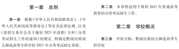 2021黔南民族幼儿师范高等专科学校分类考试招生章程