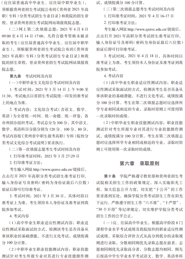 2021黔西南民族职业技术学院分类考试招生章程