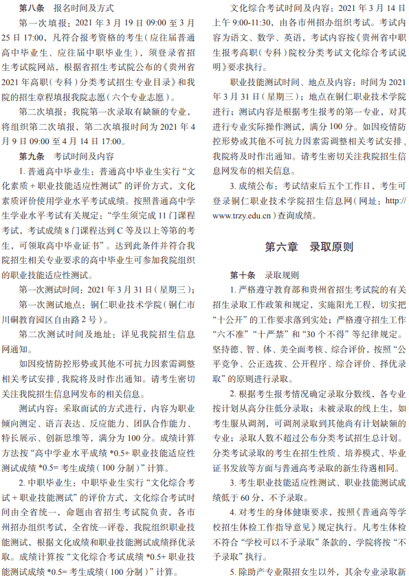 铜仁职业技术学院是2002年6月经贵州省人民政府批准,由铜仁地区农业学校、卫生学校、财政学校、商业学校、高级职校组建成立的一所公办全日制普通高等职业学院。2009年,学院整体搬迁至川硐镇新校区,新校区占地面积1160亩。