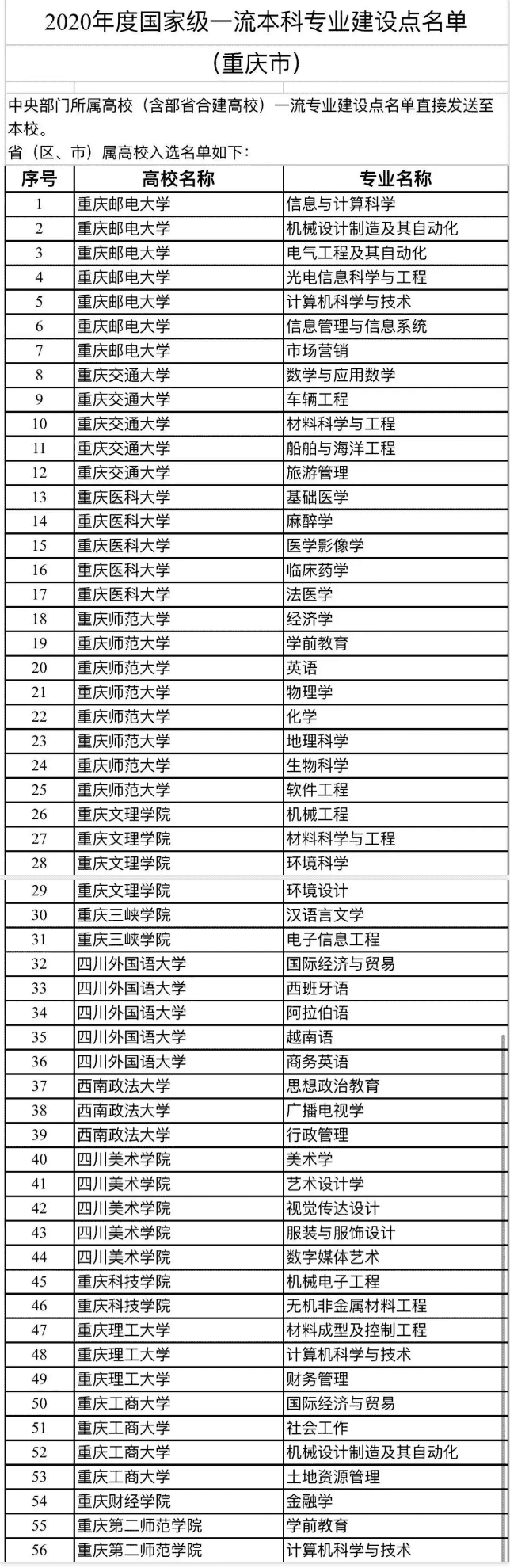 近日,教育部办公厅公布2020年度国家级一流本科专业建设点名单,重庆有多所学校专业入选国家级一流本科专业建设点名单,具体来看一下!
