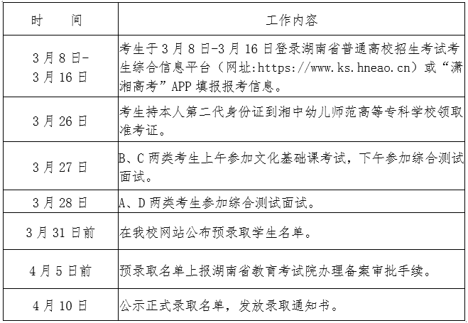 1.报名方式:单独招生报名方式为网上报名,考生于3月8日-3月16日登录湖南省普通高校招生考试考生综合信息平台(网址:https://www.ks.hneao.cn)或“潇湘高考”APP填报报考信息。