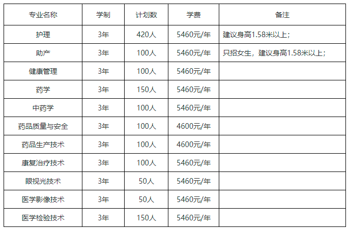 注:根据用人单位招聘需求,护理、助产专业招聘时一般要求身高 1.58m 以上,其中助产一般只招女生。为确保顺利就业,建议不符合用人单位招聘需求的考生慎重报考。