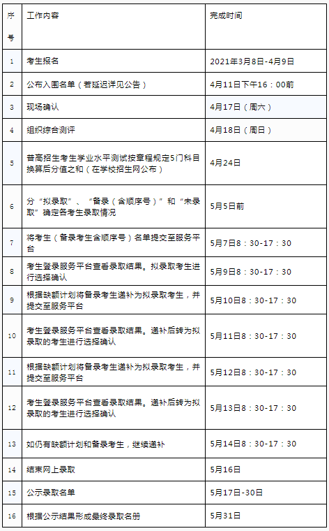 入围名单于2021年4月11日下午16:00前公布(若延迟详见学校招生网公告)。