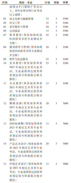 2021贵阳幼儿师范高等专科学校分类考试专业及计划